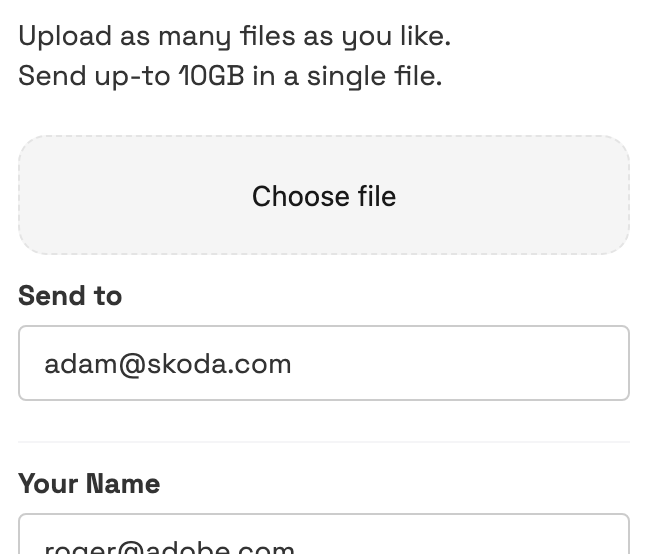 Create your own fully branded page that makes sending and receiving large files feel seamless, professional, and uniquely yours. Customise the look and feel with your logo, colours, and messaging, then share a single link that lets clients, partners, or teams upload and download files effortlessly—no accounts, no friction, no confusion. It’s the simplest way to turn file transfers into a polished, on-brand experience that feels like part of your business.